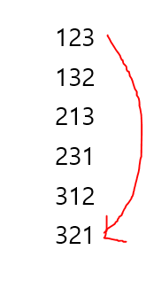 Ex) {1, 2, 3}에서 3개를 선택하는 경우 순열은 123, 132, 213, 231, 312, 321이 있다. 그렇다면 123 다음에 올 순열은 무엇일까? 132이다. 즉, 123의 다음 순열은 132임을 알 수 있다.