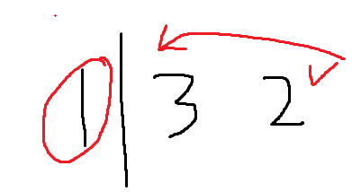 구분된 지점에 대하여, 좌측 지점의 가장 끝 숫자에 대하여 우측 지점에서 큰 수를 찾는다. 이때, 큰 수를 찾는 순서는 우측 지점의 제일 마지막 부분부터 시작한다.