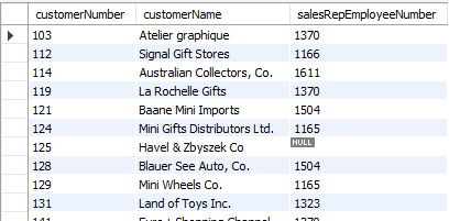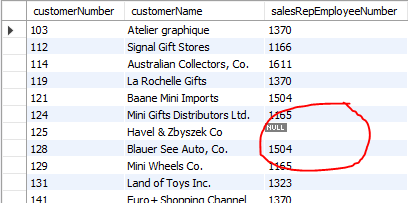 select customerNumber, customerName, salesRepEmployeeNumber from customers left outer join employees on employeeNumber = salesRepEmployeeNumber order by customerNumber;
