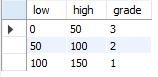 -> 예를 들어 다음과 같은 상품의 등급을 가격에 따라 분류한 테이블이 존재한다고 생각해보자