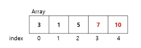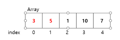 다음으로 Array[2]와 Array[3]을 비교해보자. 이때, Array[2]는 Array[3]보다 작기 때문에 두 원소의 자리를 바꾸지 않는다.