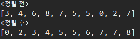 ->선택 정렬은 어떤 정렬이 오더라도 비교하는 방식이 같기 때문에, 일반적인 상황에서 비슷한 성능을 보유한다.